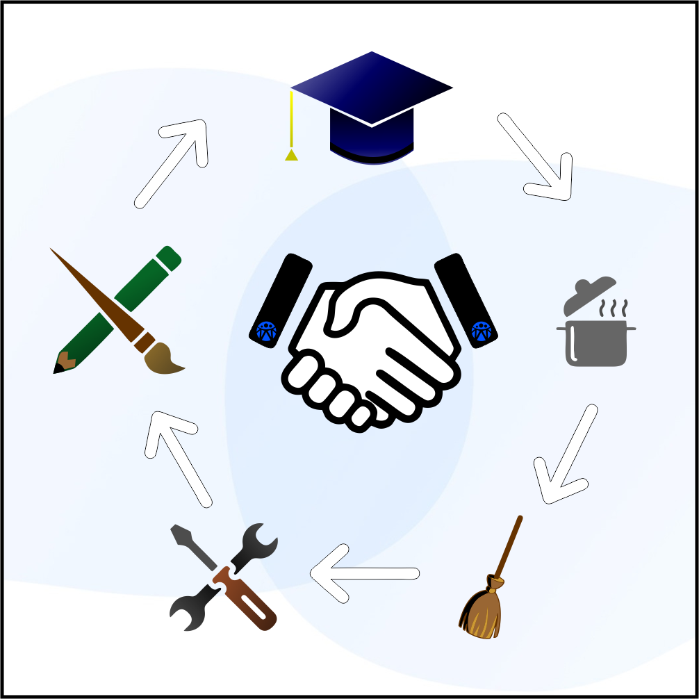 Cash isn’t necessary to live. Our system of points enables the exchange of services and goods on the basis of barter. Earn points by providing services or selling items to others. Spend them on whatever you want.