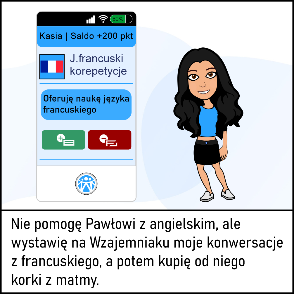 You can exchange various services and items in Wzajemniak, e.g. private lessons in foreign language (that you'll give to someone) for private lessons in mathematics. Transactions are settled in points and PLN.
